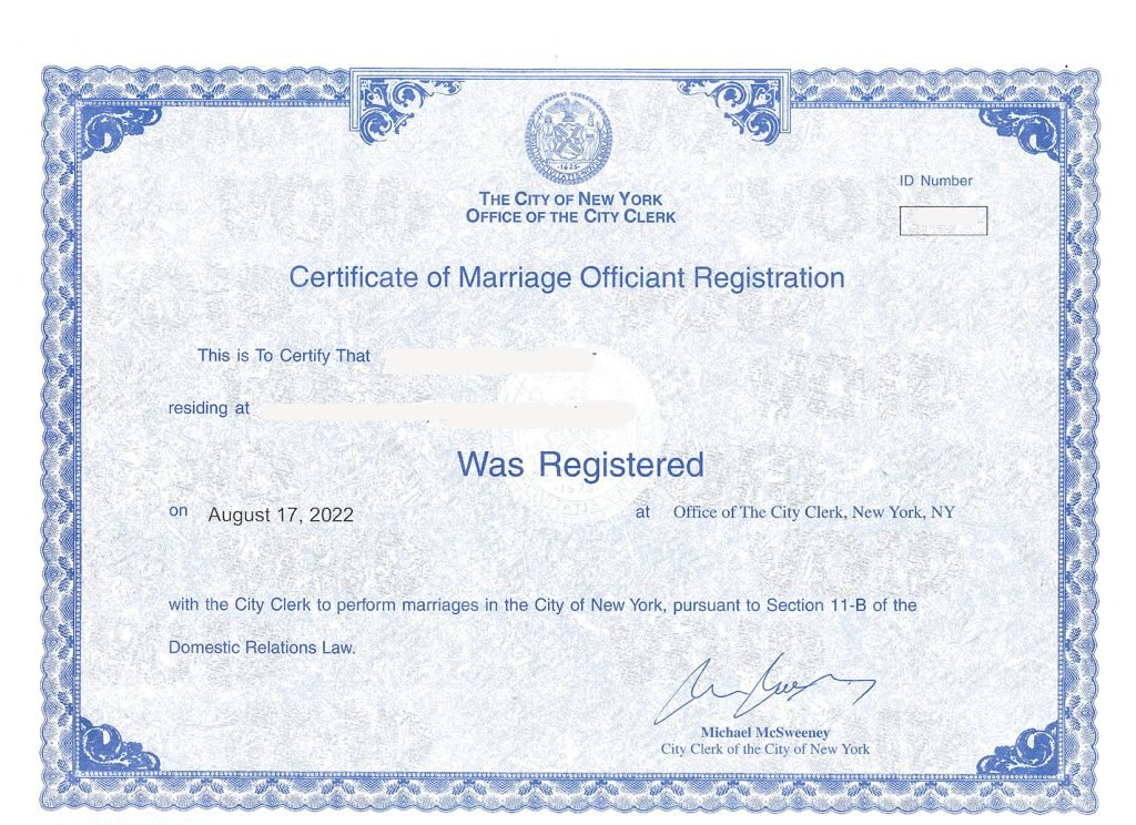 He do have an official marriage license from the NYC Office of the City Clerk. He performs wedding ceremonies at any location in NYC at any time. He also has arrangements to deliver the service at the Masjid. Also, there is services to perform the wedding ceremony in English, Arabic, Urdu, and Bengali.